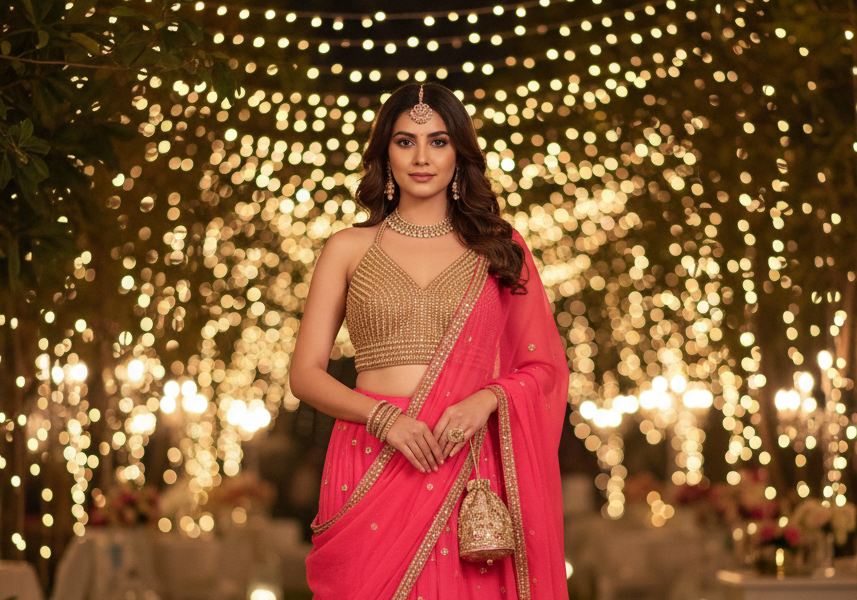 Brown and Red party wear Saree