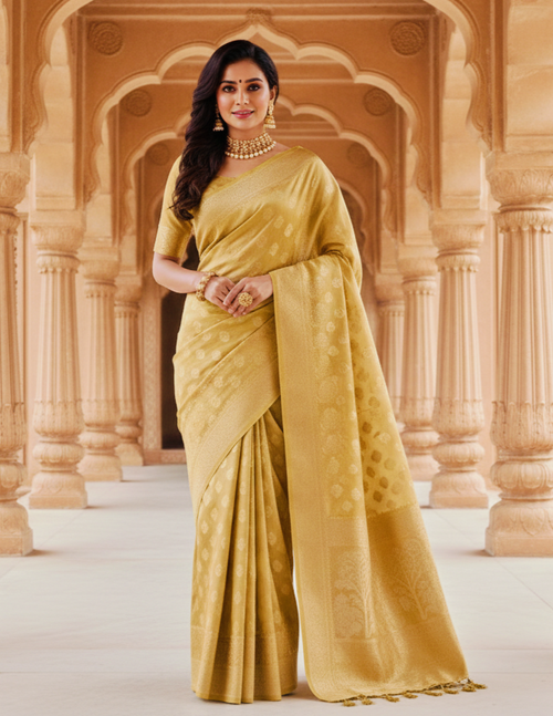 Beautiful Golden tissue mix saree with hint of Mustard green